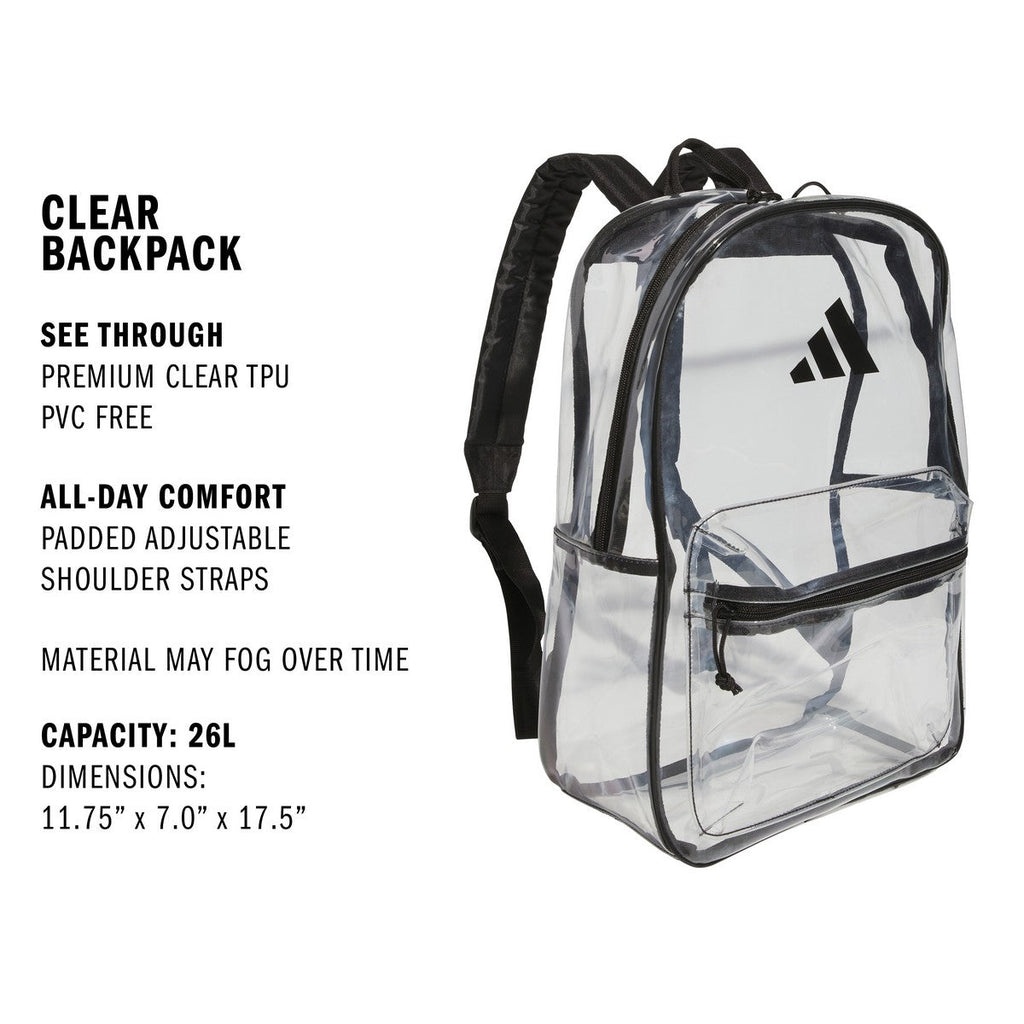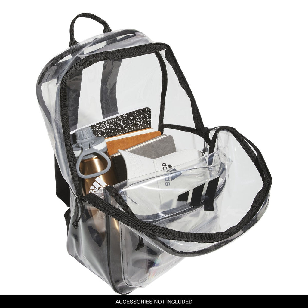 The adidas Clear 2.0 Backpack blends sporty edge with everyday functionality in a sleek transparent design. Built from durable materials and detailed with bold branding, this bag lets you show off your gear while keeping essentials organized and secure. With a spacious main compartment, inner sleeve for separation, and front zip pocket for grab-and-go items, it's perfect for school, events, or daily errands. Comfortable padded straps make it easy to carry, while the clear construction adds a modern statement to your look.