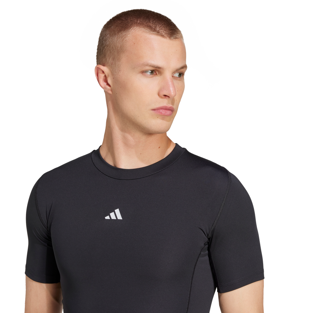 Take on the pitch with confidence in the Techfit Short Sleeve Tee for men. With a tight fit and high elastane content, this tee ensures maximum comfort and freedom of movement during intense workouts. Made in part with recycled materials, it features an AEROREADY UPF50+ single jersey and anti-microbial mesh back panel to keep you dry and fresh. It's not just a t-shirt, it's your trusted ally in every match.