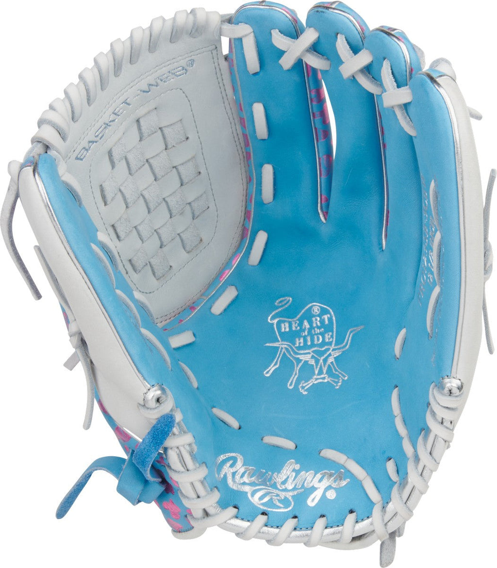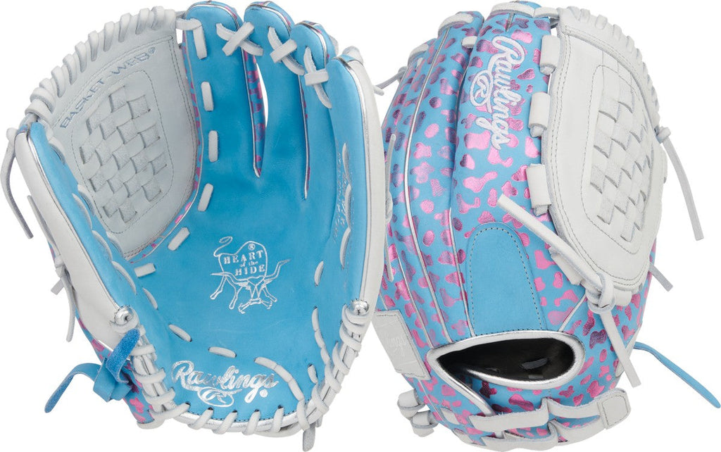 Cover more ground and command the outfield with the Rawlings Heart of the Hide 12.5-Inch Softball Glove. This gamer is built from Rawlings' legendary HOH steerhide leather, giving you the durability, structure, and performance trusted by elite athletes everywhere. Its 12.5-inch length and basket web design make it perfect for tracking down fly balls and securing tough catches. Plus, the Columbia Blue, White, and Pink colorway makes a bold statement every time you flash the leather. Whether you're tracking one in the gap or gunning down runners from the grass, this glove gives you the tools to dominate the outfield. Own the outfield with the Rawlings Heart of the Hide 12.5-Inch Softball Glove.
