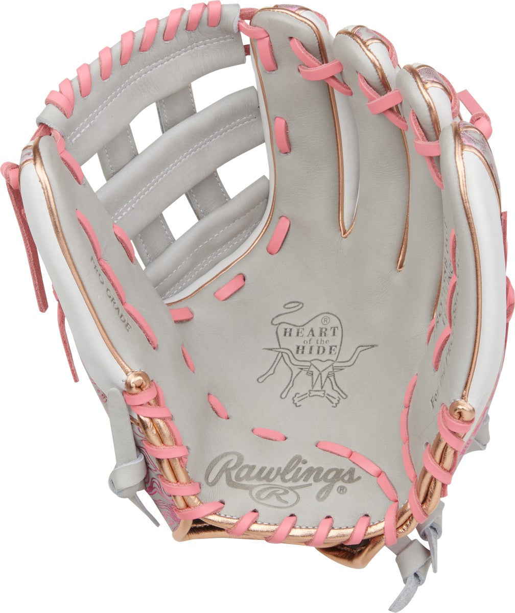 Dominate the diamond with the Rawlings Heart of the Hide 11.75-Inch Infield Softball Glove. This glove features a trusted 715 pattern and Pro H Web design, giving infielders a secure pocket with a clear line of sight for lightning-fast transfers. The 11.75-inch size provides the ideal balance of control and coverage for quick glove work on the dirt. Crafted from premium Heart of the Hide leather, this glove is built to handle the demands of elite-level play while forming perfectly to your hand over time. The stylish gray shell paired with pink lacing adds a modern pop of color to your game, without compromising on performance. Whether you're fielding hot shots or flipping double plays, this glove delivers the feel, function, and flair you need. Upgrade your game with the Rawlings Heart of the Hide 11.75-Inch infield softball glove. Let me know when you're ready for the next one.